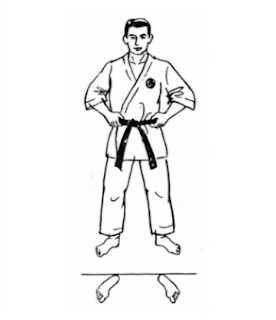 Musubi-dachi is the formal way of standing in Japanese martial arts and in Japan. This stance is very important and is used to perform the formal respectful bow called rei. Musubi-dachi and rei should be performed before and after warmups, kihon, kata, kumite or any interaction between people.
