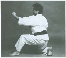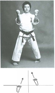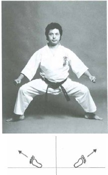Right knee is slightly bent, and the left foot has stepped behind, heel up, on the ball of the foot, Hips are lowered and the back is straight. This stance is used to make quick transitions, such as moving in close to an opponent without exposing the center of the body.