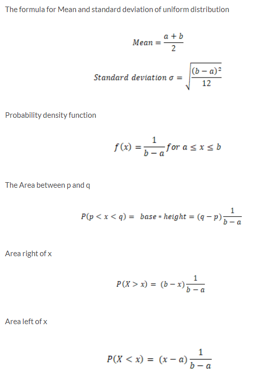 The formula for Mean and Standard Deviation of Uniform Distribution