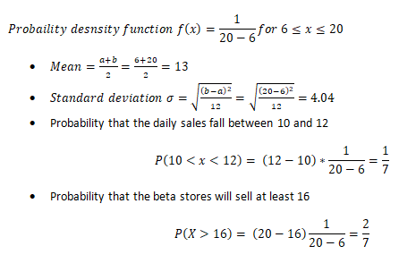 The number of mobile phones sold by Beta stores is uniformly distributed between 6 and 20 per day. Then find