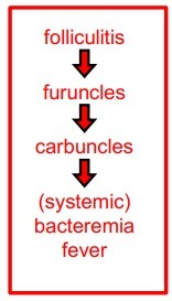 pus-forming (massive amounts of neutrophils and other leukocytes are lysed by bacterial factors (e.g. leukocidin) and release their lysosomal contents in attempting phagocytic killing of the staphylococci).