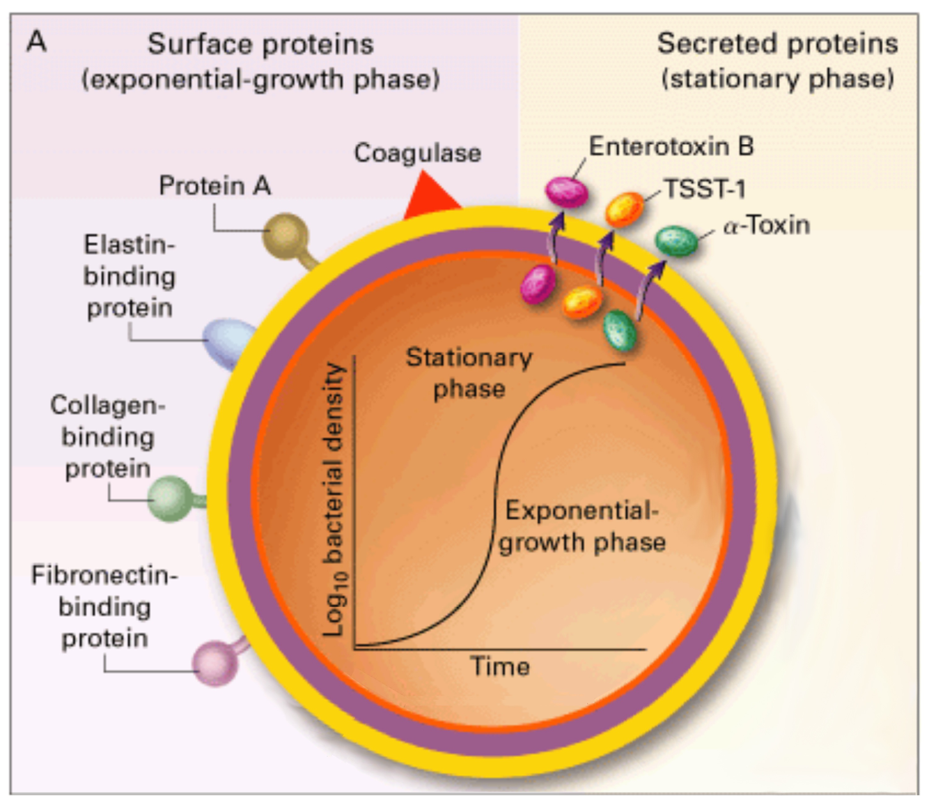 surface virulence factors expressed during exponential growth (colonization purposes)
