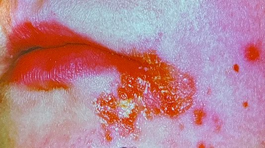 Toxina que rompe desmogleína (unión entre células de la piel). Lo que provoca: