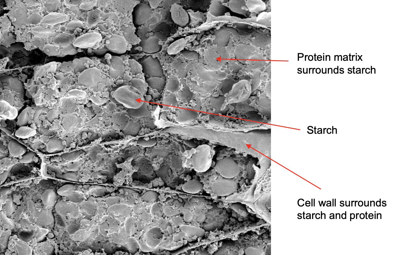 * Protein matrix surrounds starch