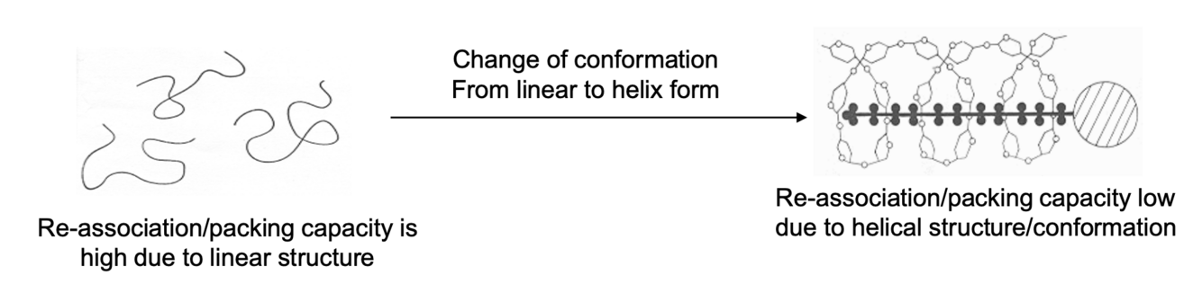 Clusters of Amylose–Lipid Complex can associated with each other through H bonding since the outside is hydrophilic between the amylose which get packed and so enzyme cannot hydrolyze the crystals very well.