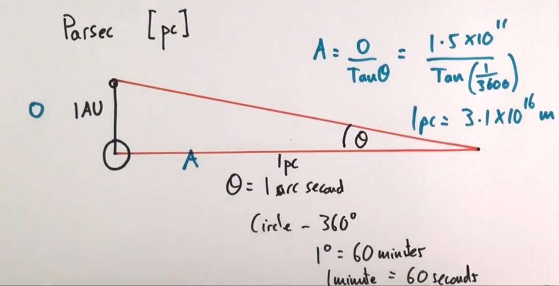 The distance to a star which subtends an angle of one arc second to the line from the centre of the earth to the centre of the sun.