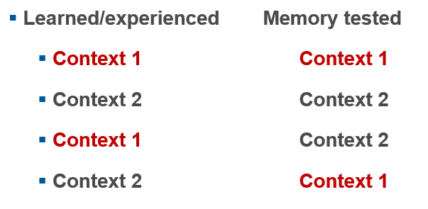 -better learning when the context was thew same in encoding and retrieval