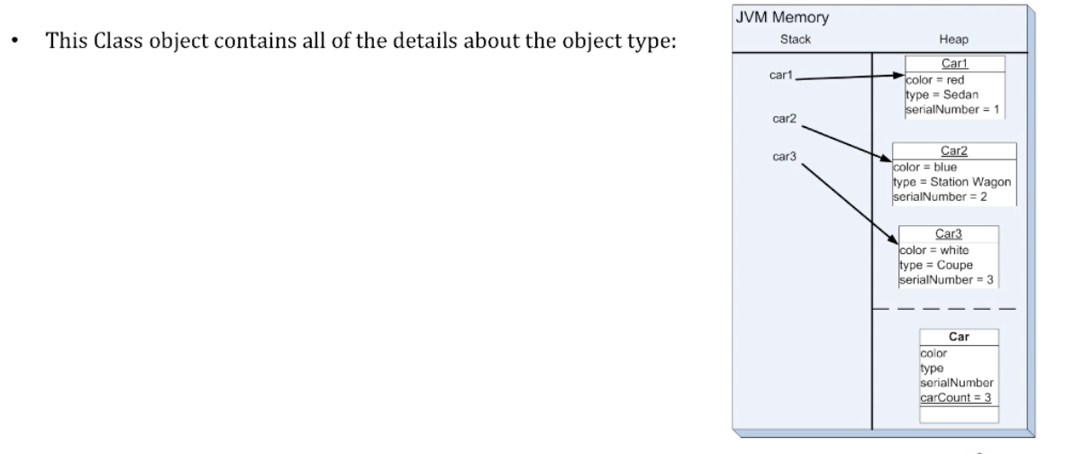 Note: Also, check the attached picture to see how the JVM memory is used for this implementation. It clearly shows that carCount being static is not tied to Objects, but to the Class Car.