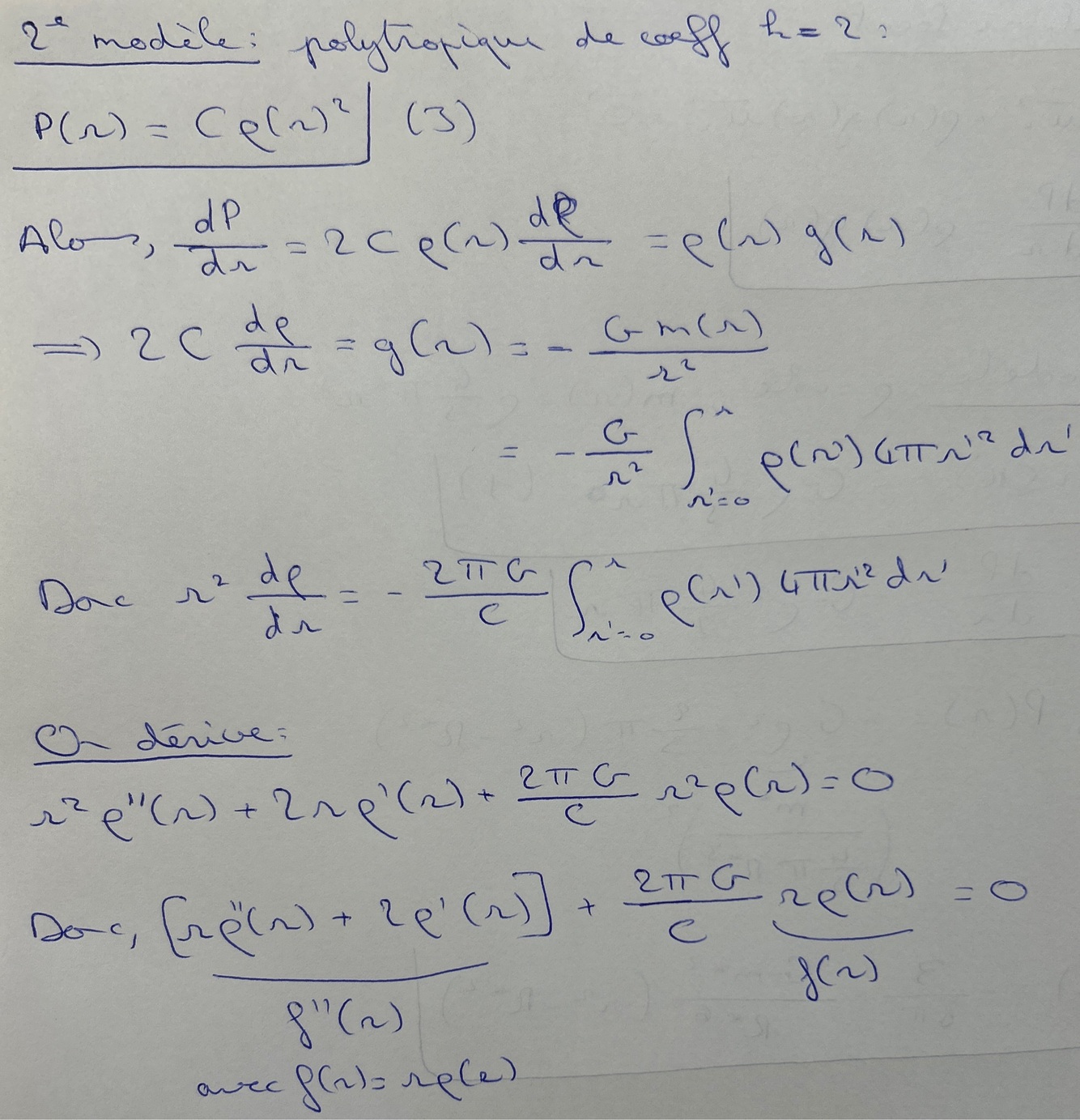Dans un modèle P(r) = C.ρ(r)², déterminer l’équation différentielle sur r×ρ(r) en fonction de G et C