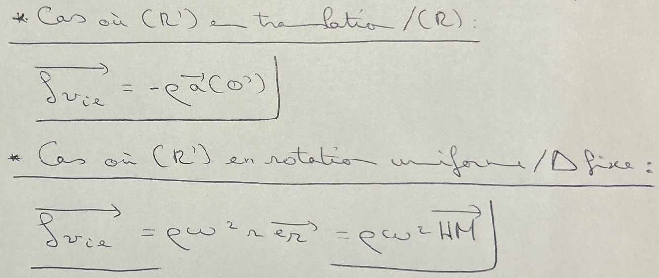 Préciser l’expression de fv;i,e# dans le cas d’un référentiel en translation ou en rotation uniforme