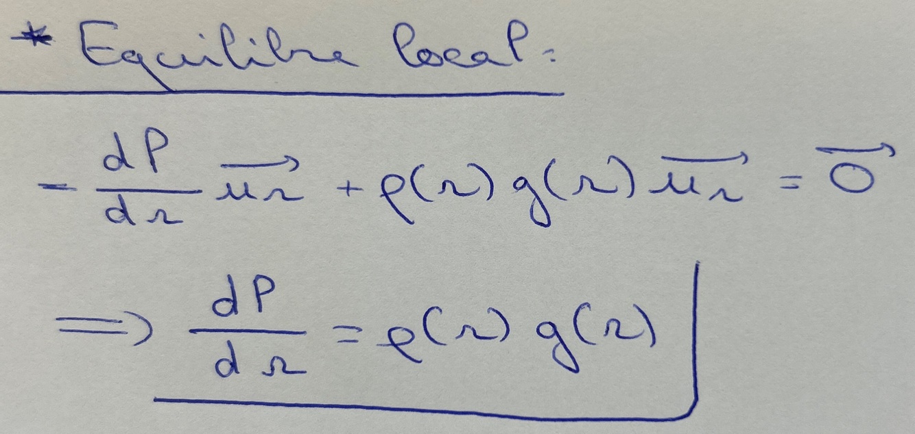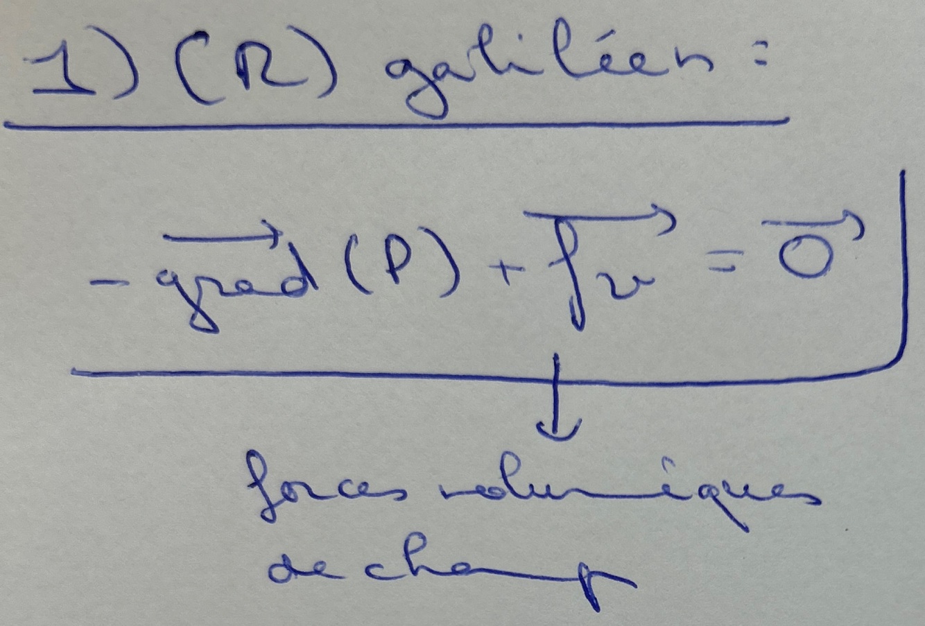 Rappeler la relation fondamentale de la statique des fluides en référentiel galiléen