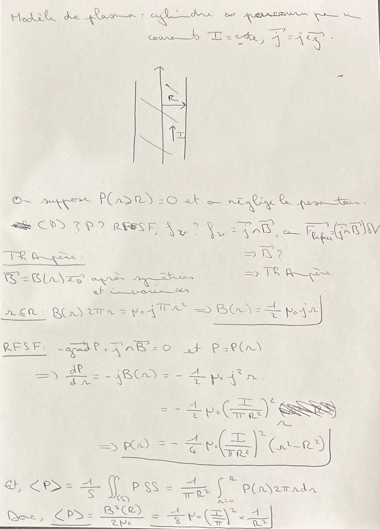 Calculer <P>, la pression moyenne dans une section droite, en fonction de μ0, j et R