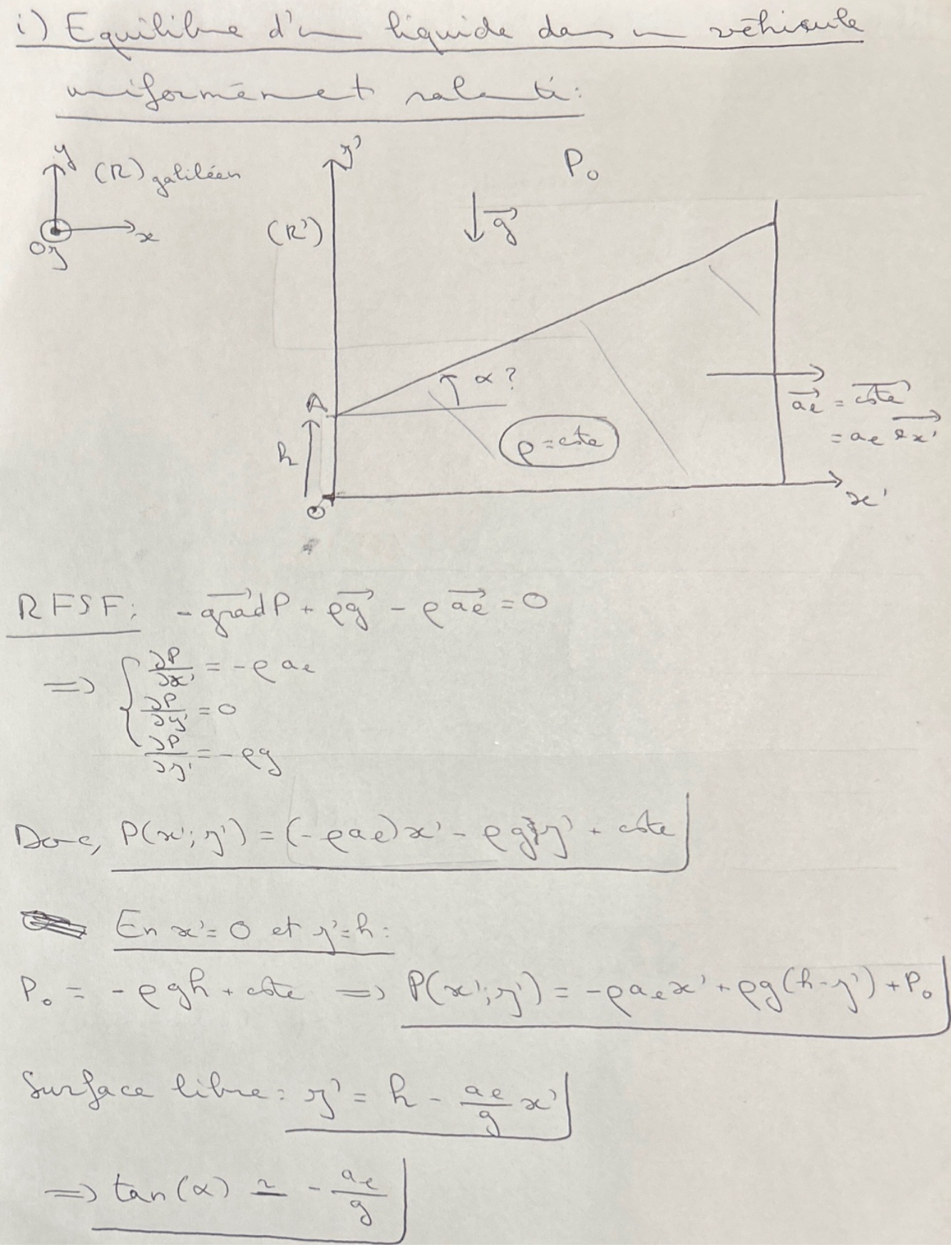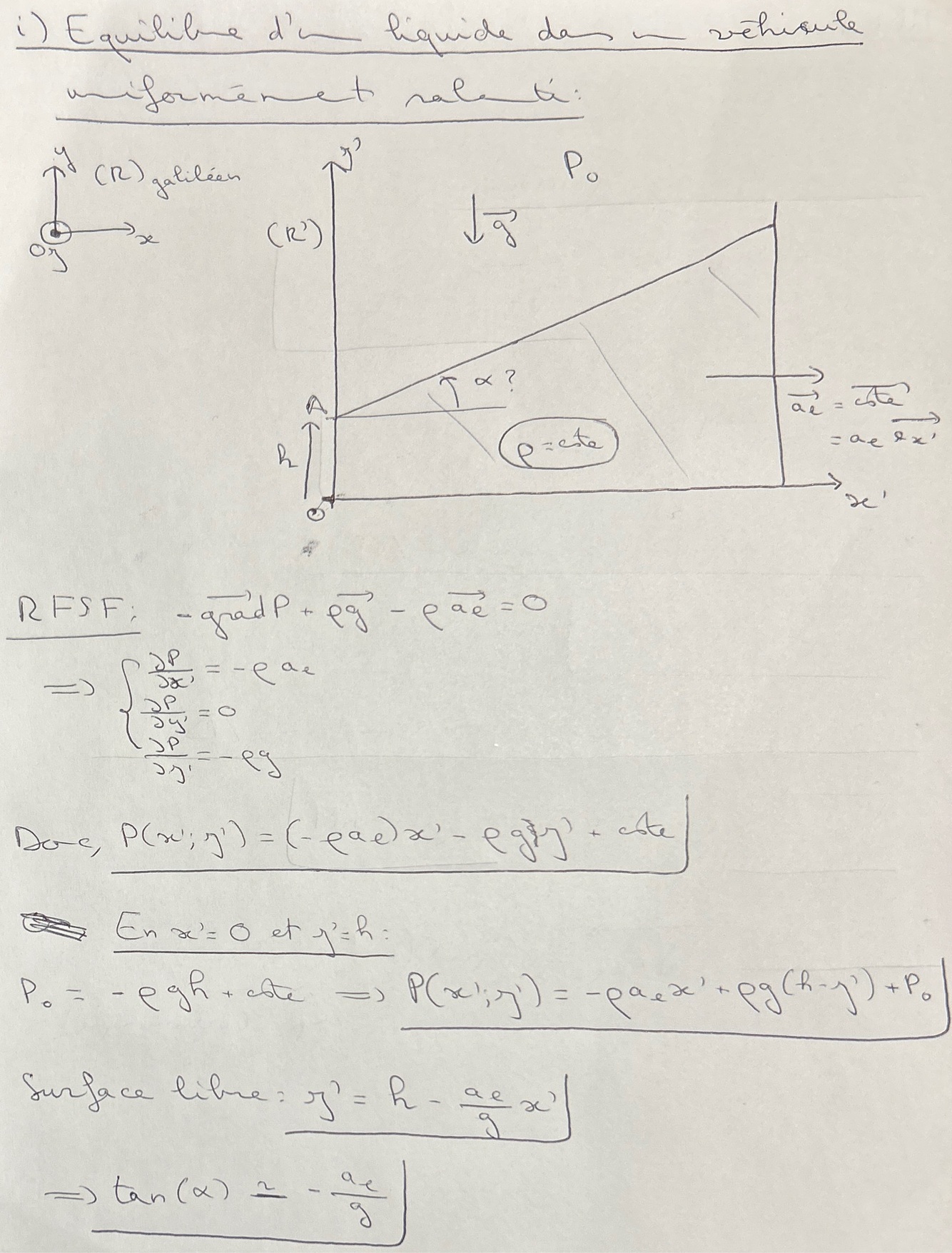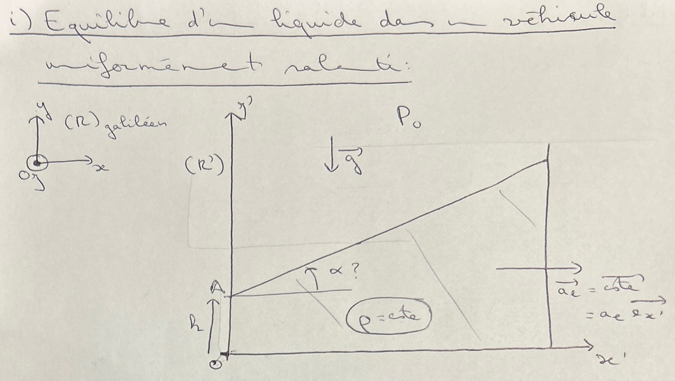 Montrer que le fluide mis en mouvement prend cette forme à l’équilibre relatif et déterminer α