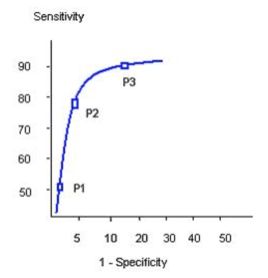 P3가 P1 보다 높은 sens 이고 낮은 spec => 즉 앞 그림에서 low serum marker 쪽으로 가고 있는거.