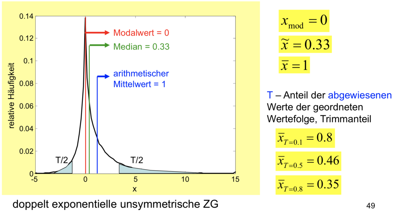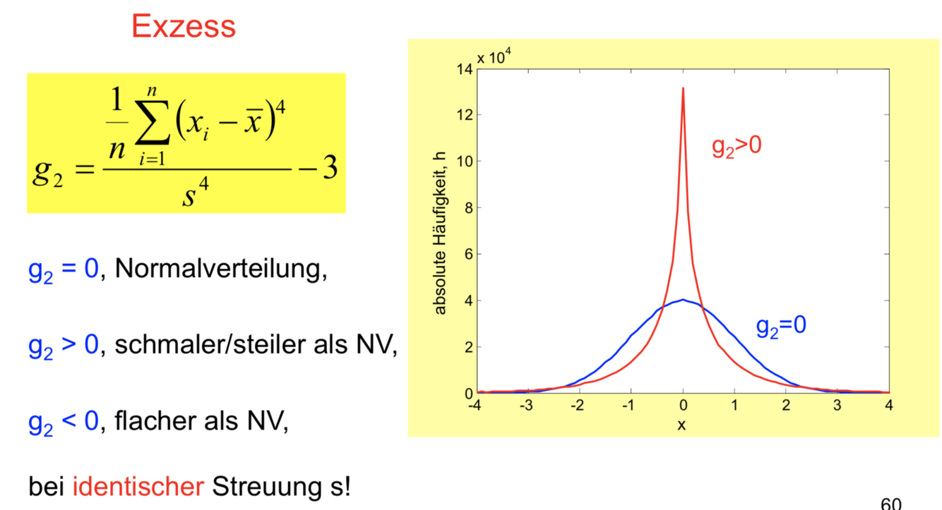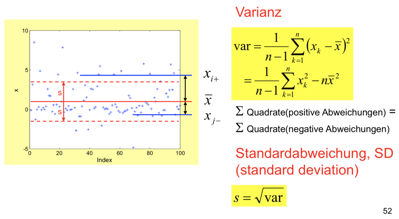 Die Varianz gibt den mittleren Abstand der Messwerte vom Mittelwert an, ist also ein Maß für die Breite der Verteilung der Daten. Da sie auf den MW bezogen (zentriert) ist , ist sie von der Lage der Verteilung unabhängig, und heißt daher auch zweites zentrales Moment.