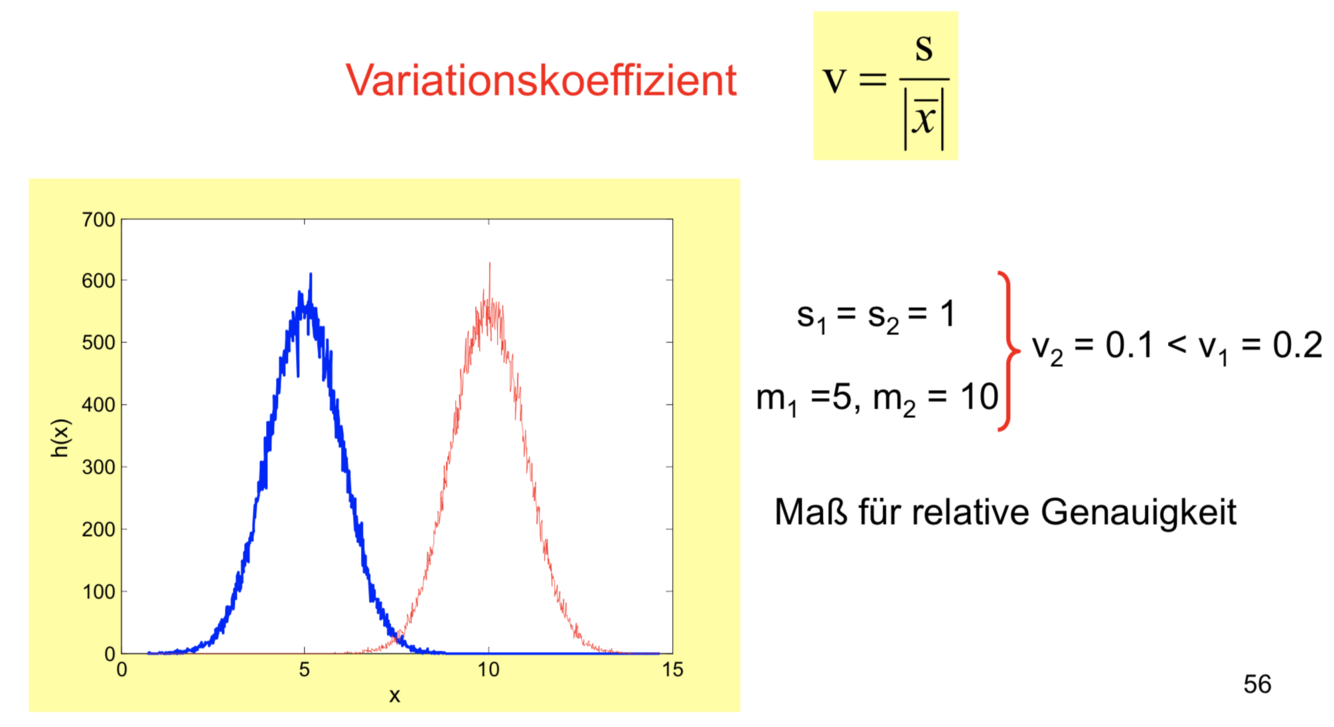 Die Standardabweichung einer Stichprobe wird durch den jeweiligen Mittelwert dividiert. Der Korrelationskoeffizient drückt daher das relative Verhältnis der Streuung zum Mittelwert aus. Der Variationskoeffizient besitzt keine Einheit.
