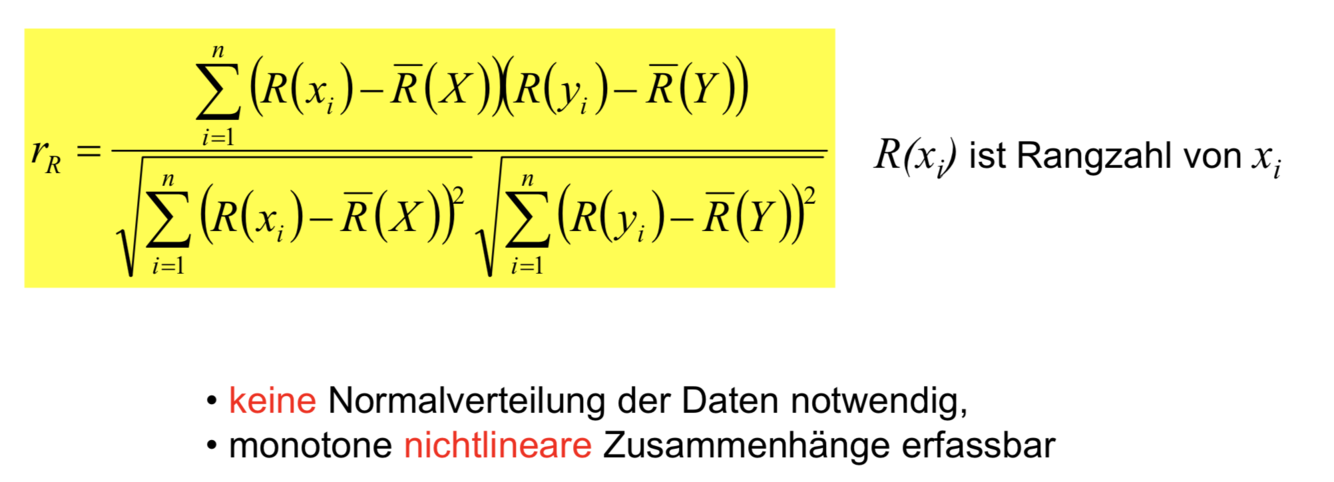 Wie wir schon beim Median, Quantilen und getrimmeten Mittelwerten beobachten konnten, bringen Rangfolgen eine gewisse Robustheit in die Analyse. Und obwohl – oder gerade weil - sie selbst nichtlineare Operatoren sind, können sie einen nichtlinearen Zusammenhang besser identifizieren. Ausserdem sind sie robust gegen die Forderung nach der Normalverteilung der Daten.