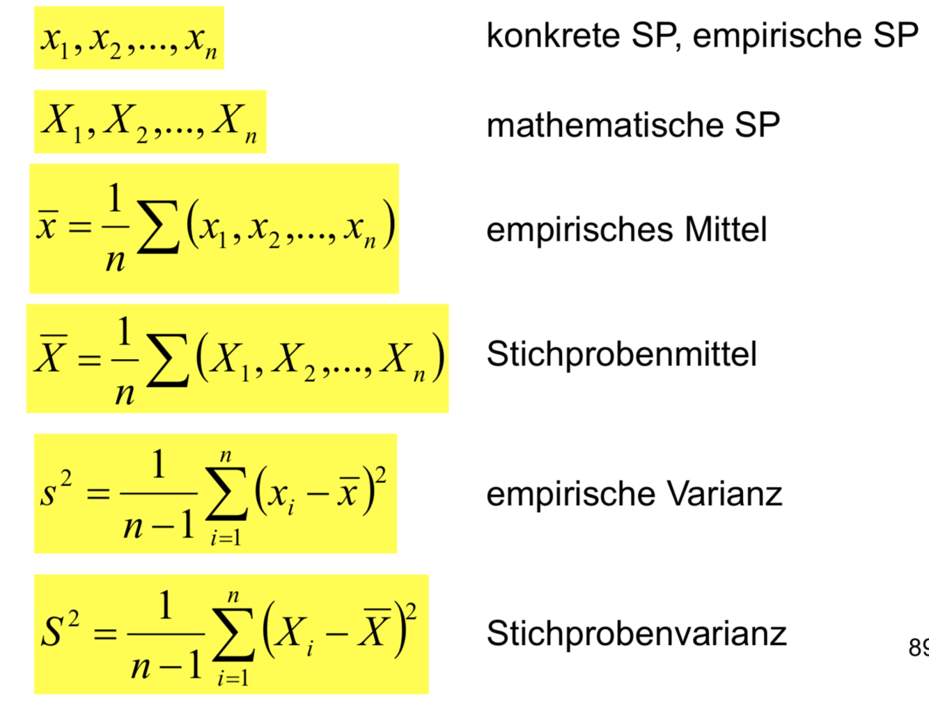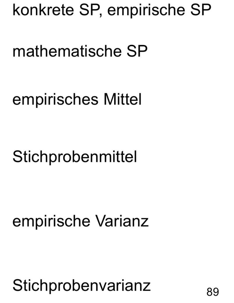 Die Verwendung der Schreibweise ist die gleiche, wie in der deskriptiven Statistik: mit kleinen Buchstaben werden konkrete (gemessene, ermittelte) Werte, mit großen Buchstaben die statistischen Größen (Variable, Maße).