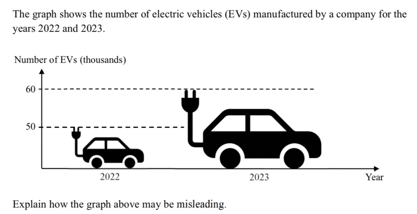 This may mislead readers thinking that the number of EVs manufactured in 2023 is at least twice the number manufactured in 2022 based on the height of size of the picture
