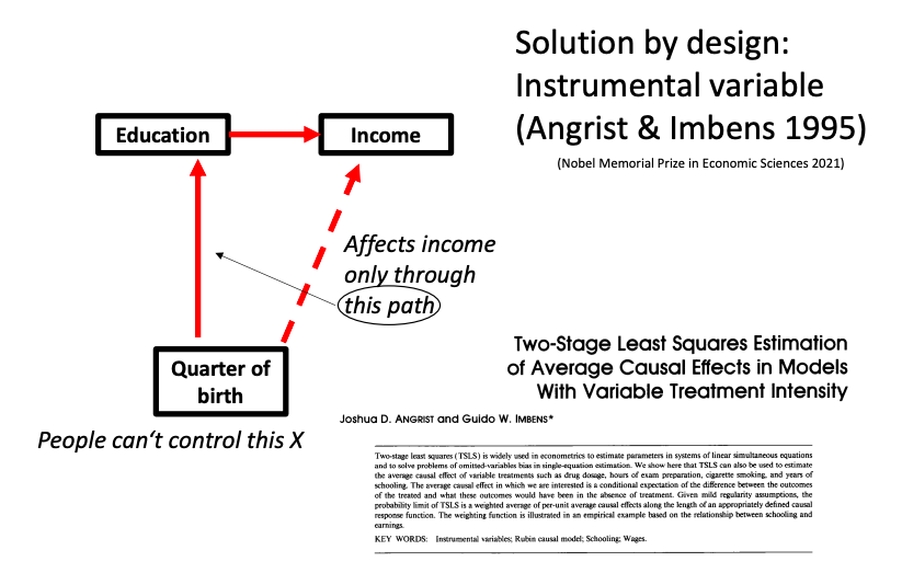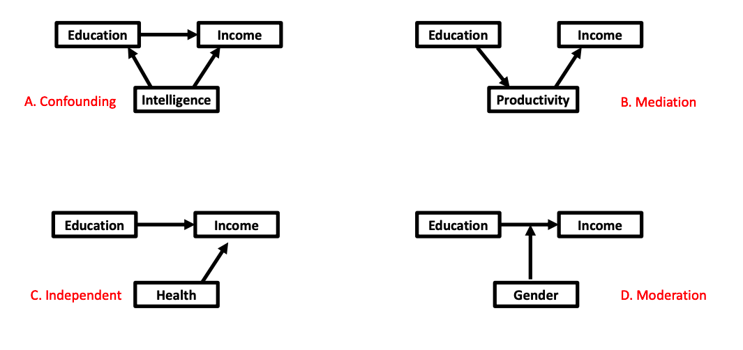–> i.e. gender cannot be considered a cause of income, even if it can be shown (perhaps after controlling for other determinants of income) that men and women systematically differ in their incomes, because an individual’s gender cannot be changed.