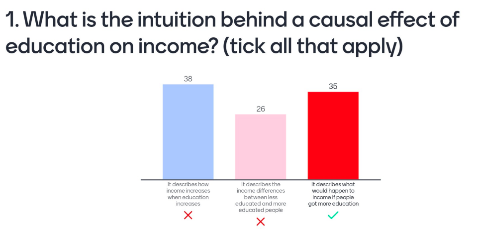 causal effect = hard to get, u enter a hypothetical world –> what if I gave you more education?