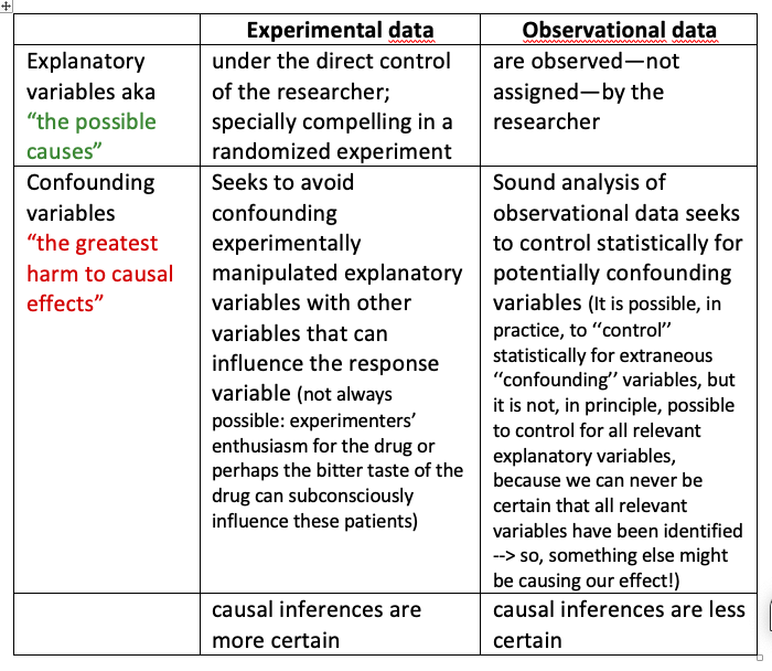 experimentally manipulable explanatory variable, at least in principle, particularly sticky point because, in social science, many explanatory variables are intrinsically not subject to direct manipulation, even in principle