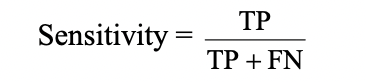 -proportion of diseased subjects correctly classified by the test; i.e., the ability to detect a true positive in a person afflicted with the disease