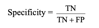 -proportion of healthy subjects correctly classified; i.e., the ability to exclude a diagnosis in a healthy person