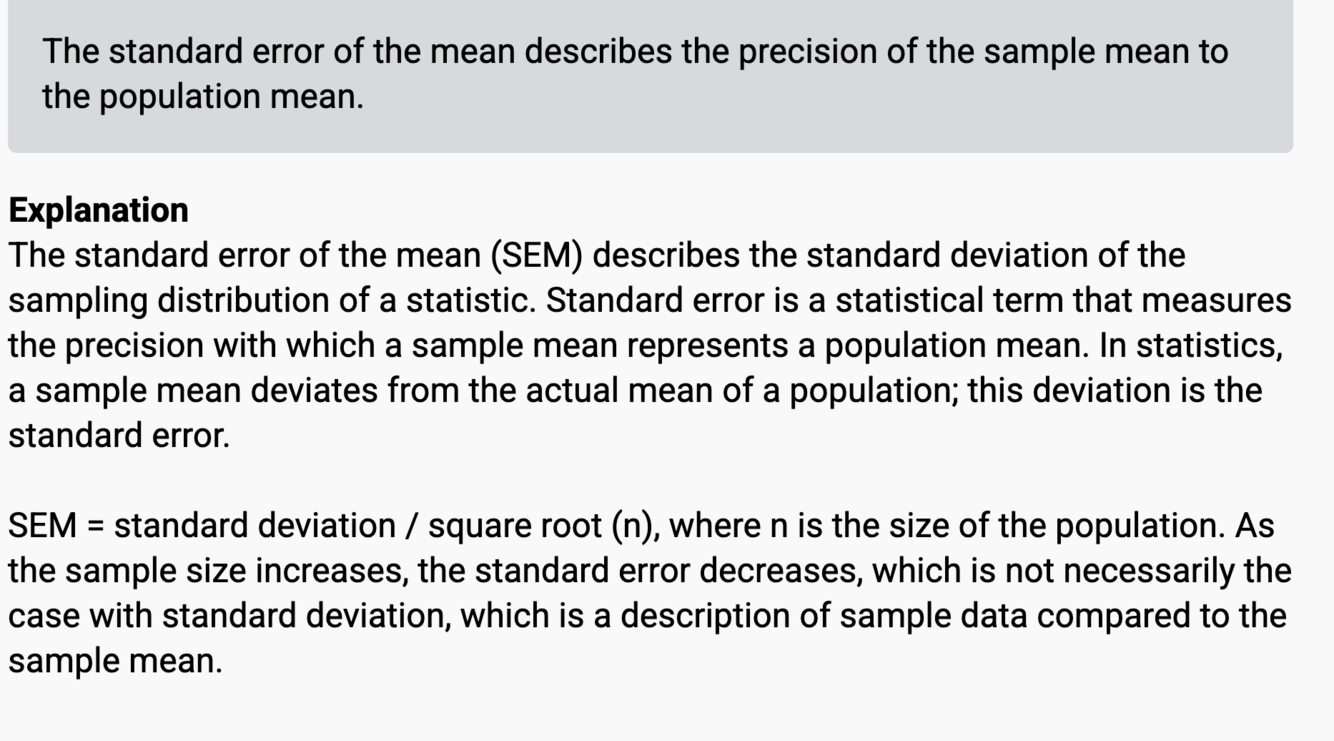 Define standard error of mean (SEM).