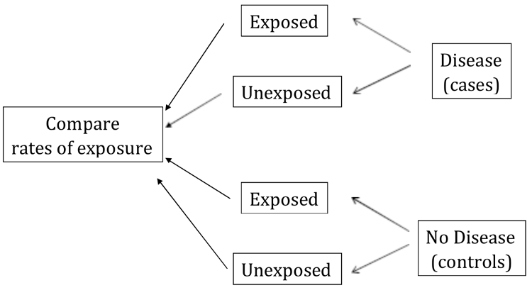 A case-control study is a retrospective study comparing patients with and without a disease, looking for exposure risk factors.