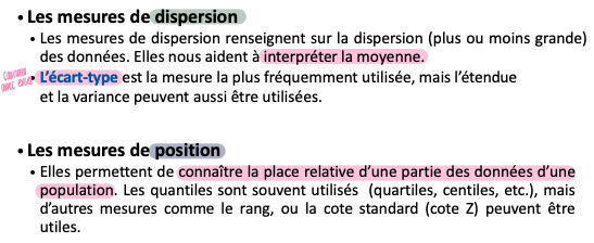 quelle est la différence entre les mesures de dispersion et les mesures de position (statistiques descriptives)