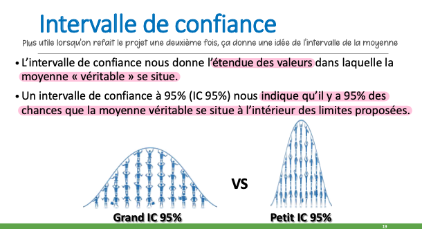 c’est l’étendue des valeurs dans laquelle la moyenne “véritable” se situe