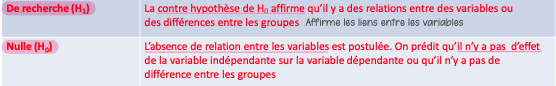 que sont une hypothèse de recherche (H1) et nulle (H0)?