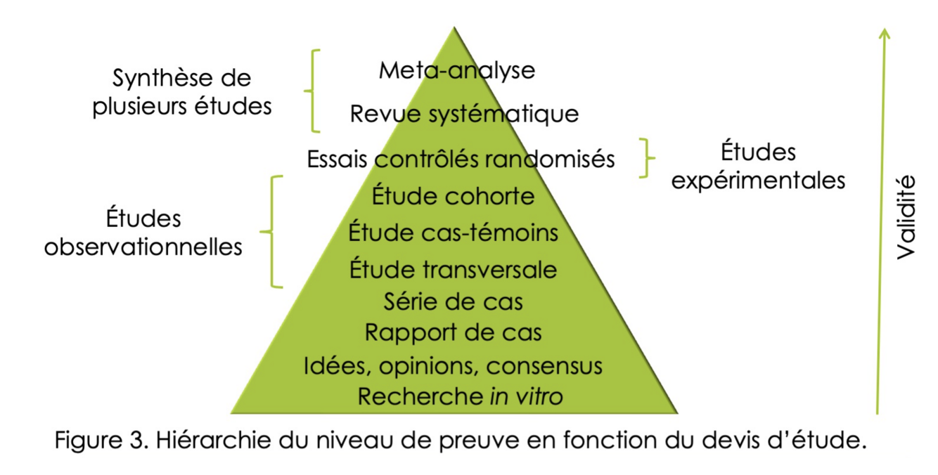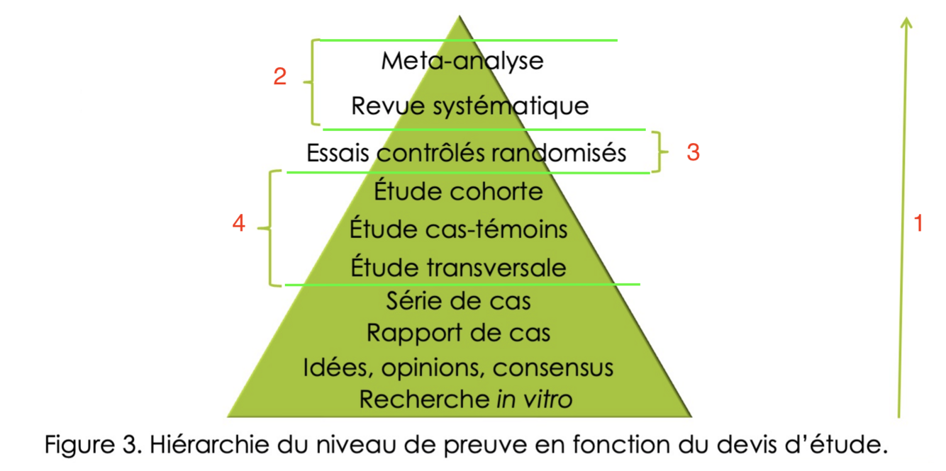 qu’est ce qui augmente plus on monte dans la pyramide (1)? quels types d’études sont 2, 3 et 4?