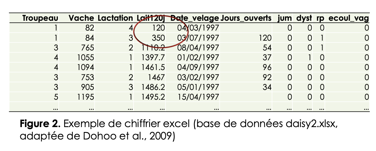 lors de compilation de données dans un chiffrier (ex: excel), que représentent généralement les lignes vs les colonnes?