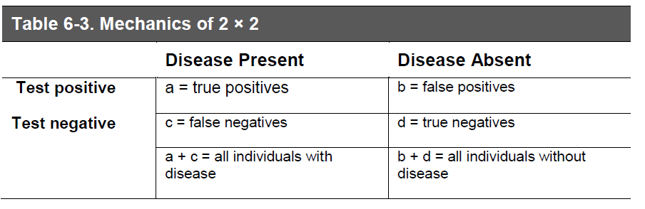 Sensitivity= (SnOut)- chance of positive test if you have disease