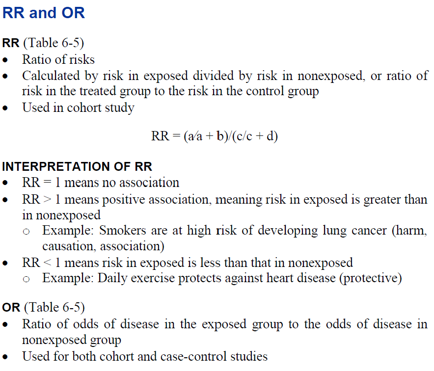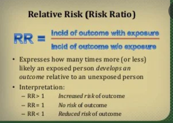 Relative risk- (risk in exposed/treated) / (risk in unexposed/untreated)