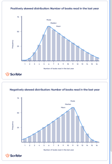 Mode: the highest point in the graph Median: 50th percentileMean: Sum of N/ N