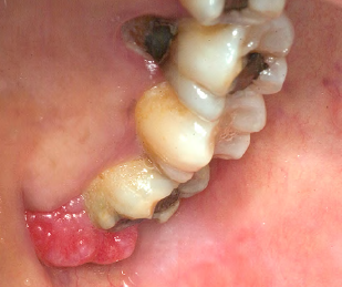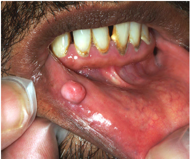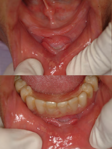 • Location: vestibule (maxilla or mandible), along the