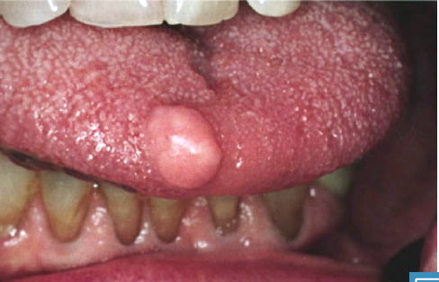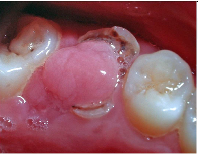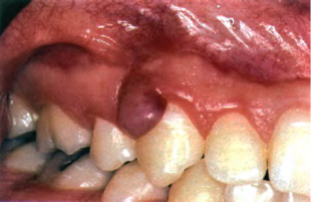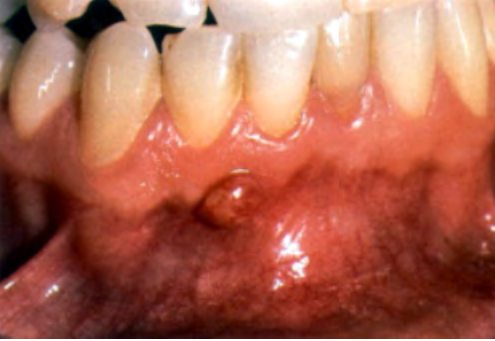 Lesion in the image is pedunculated – put a periodontal probe on normal gingiva and glide along underneath it, there’s a stalk