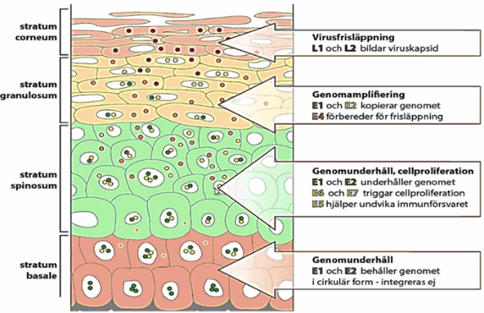 • L1 och L2 är immunogena men produceras bara vid hudytan och HPV kan spridas vidare