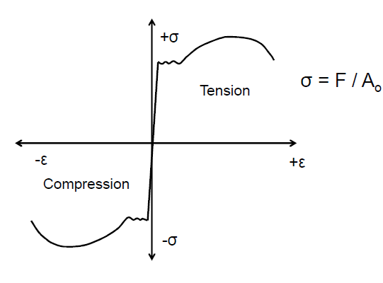 The stress-strain relationship of most types of steel under compression is almost symmetrical to the relationship under tension