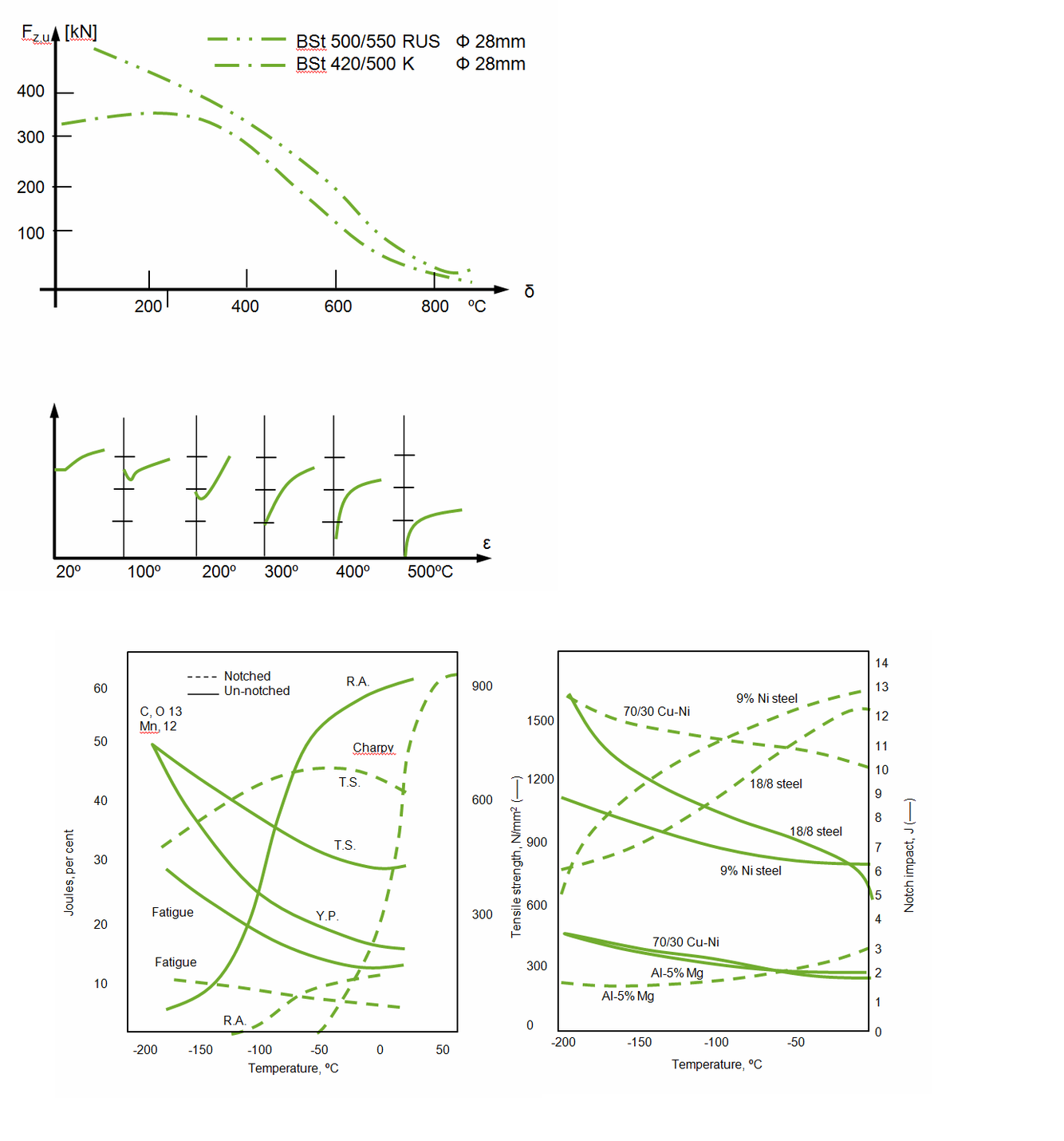 Under low temperatures (< 0° C) steel usually shows an increase of strength and after an