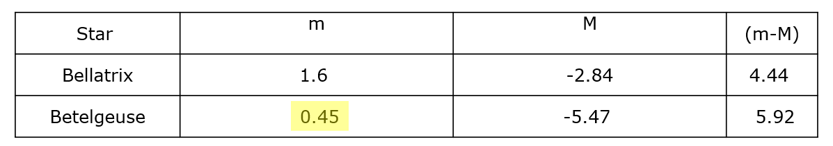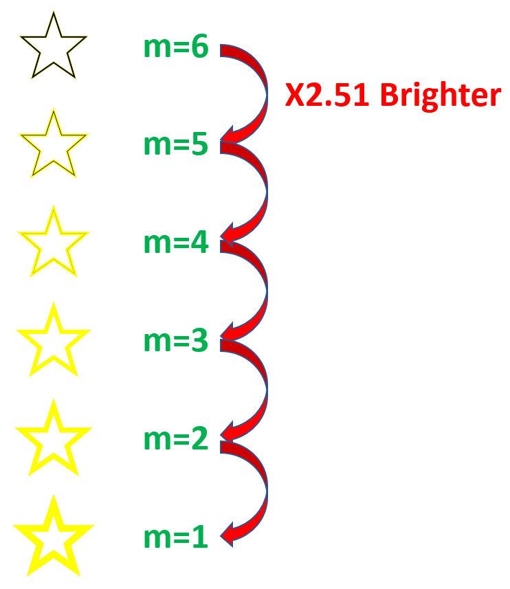 So apparent magnitude (m) = 2.513 = 15.8 x brighter