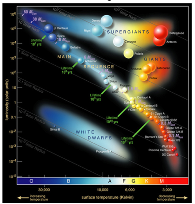 What are the 7 **Stellar Spectral Classes** (in Temperature order)?
