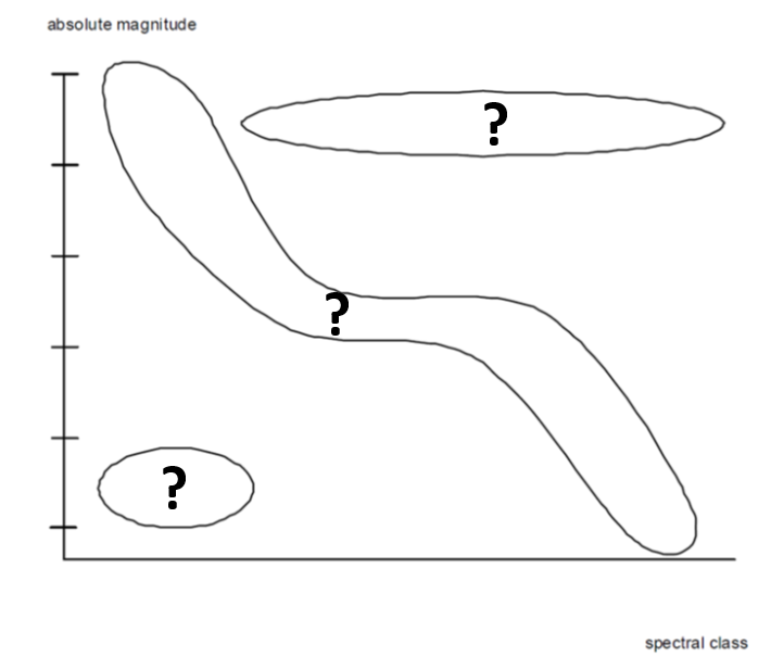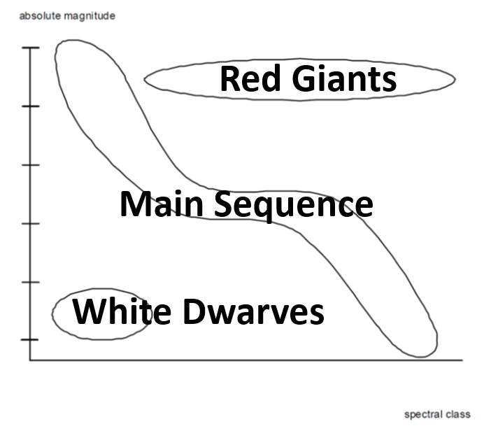 What are the 3 main regions of the Hertzsprung-Russel Diagram?