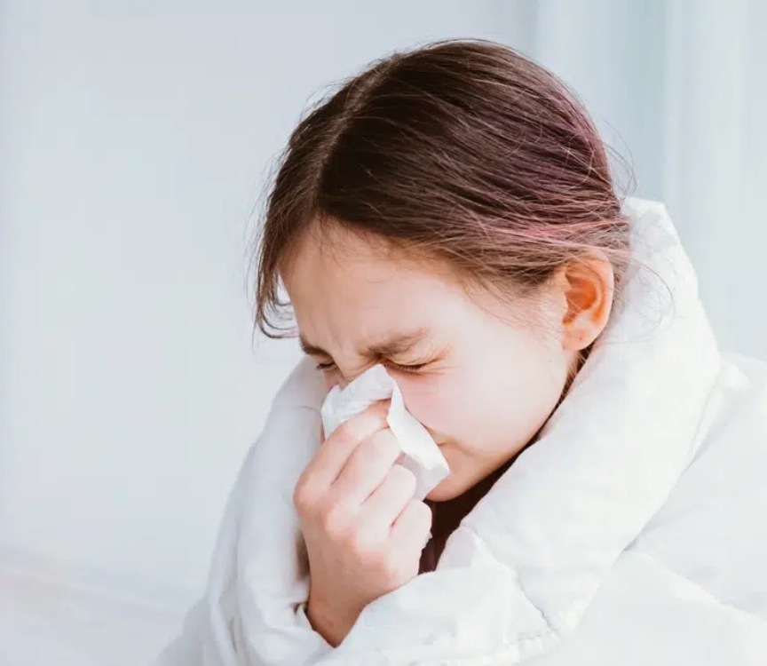 ALLERGIC RHINITIS (Happens when your nose gets extra sensitive and reacts strongly to harmless things in the air like pollen or dust, causing sneezing, stuffiness, and itchy eyes.)