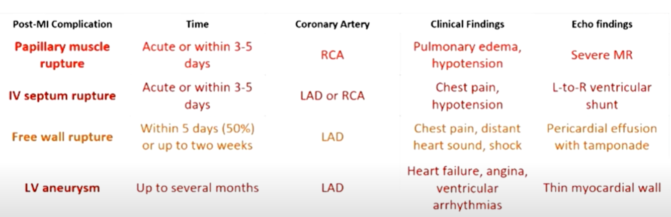 MI 이후 몇일에 papillary rupture 가 일어나면 증상? 이게 어느 coronary A. 때 많나?