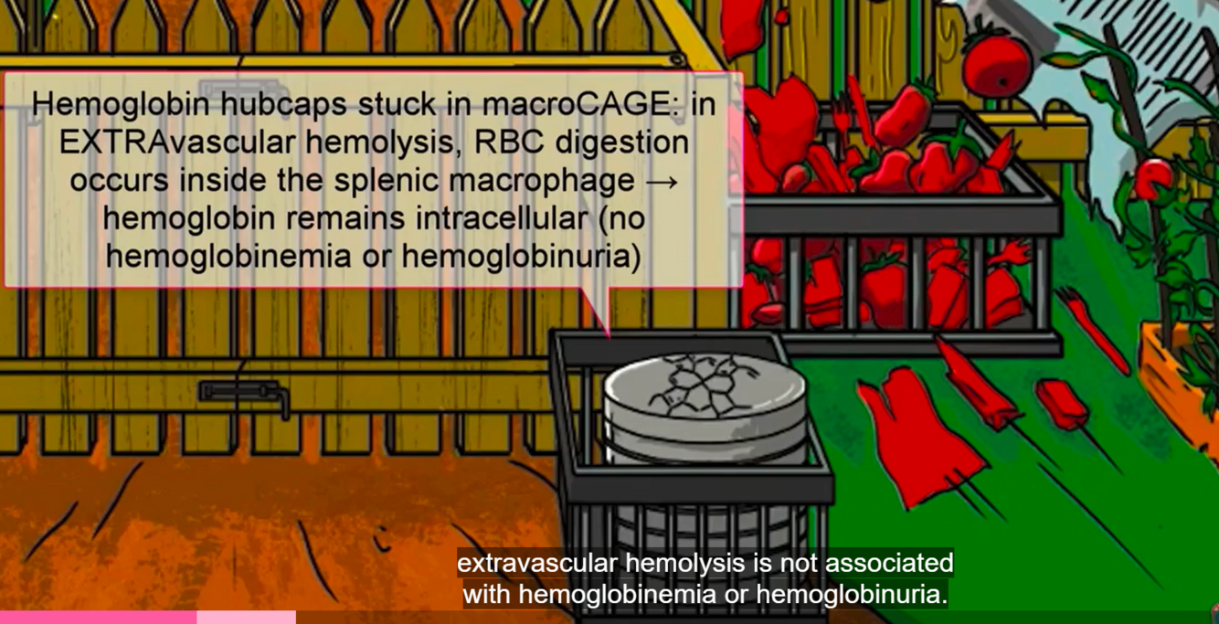 하지만 Macrophage가 처리하는 extravascular 에선 heme이 나올수 없으므로 hemoglobulinemia & hemoglobuliuria 는 intravascular에서만