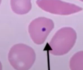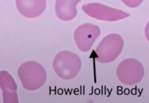 하우~~우우우우 우~~~ Howell jolly body 가 spleem에 의해 제거되지 않고 출현 => 하울링하는 개에서 목줄에 퍼플 점